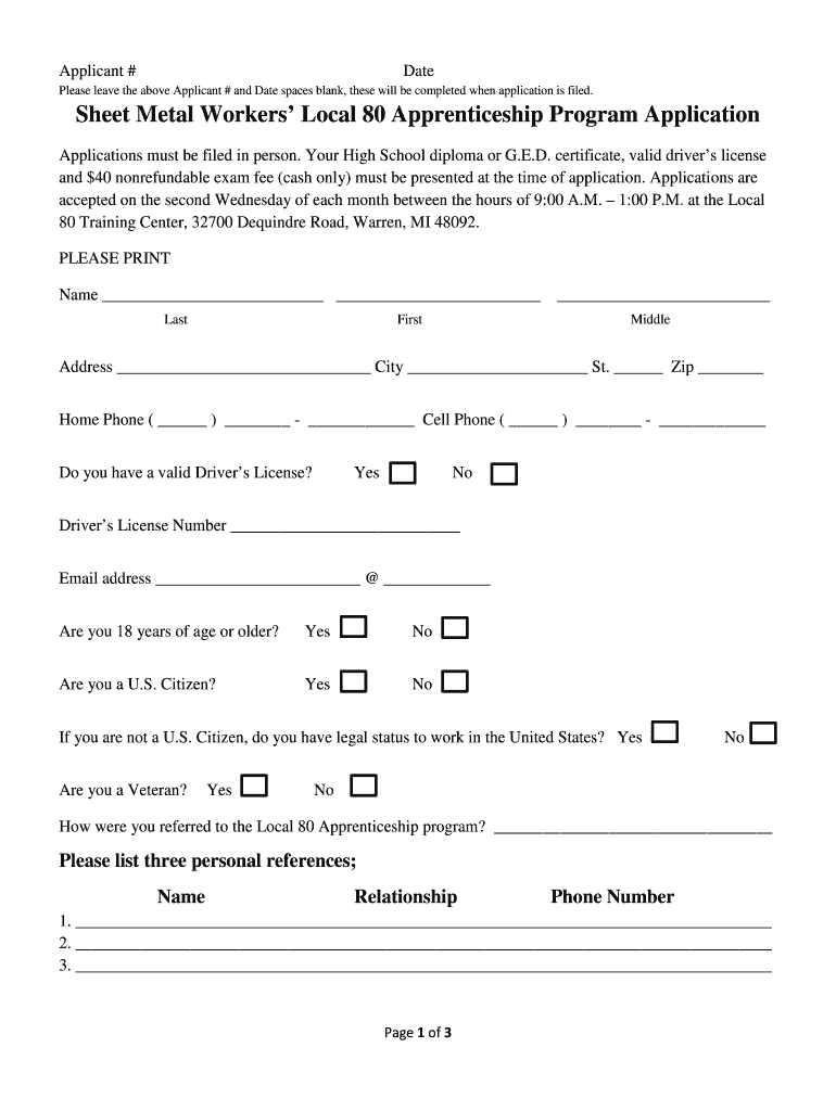 Get the free Please leave the above Applicant # and Date spaces blank, these will be completed wh...
