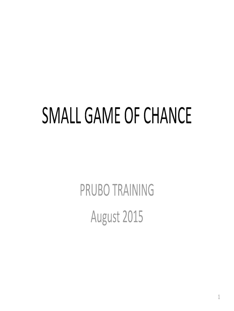 SMALL GAME OF CHANCE PRU BO TRAINING August 20151SMALL GAME OF CHANCE Changes to the law in 2013 Specific games of chances allowed: Punchboards, Pull tabs, Raffles, Daily Drawings, Weekly Drawings,