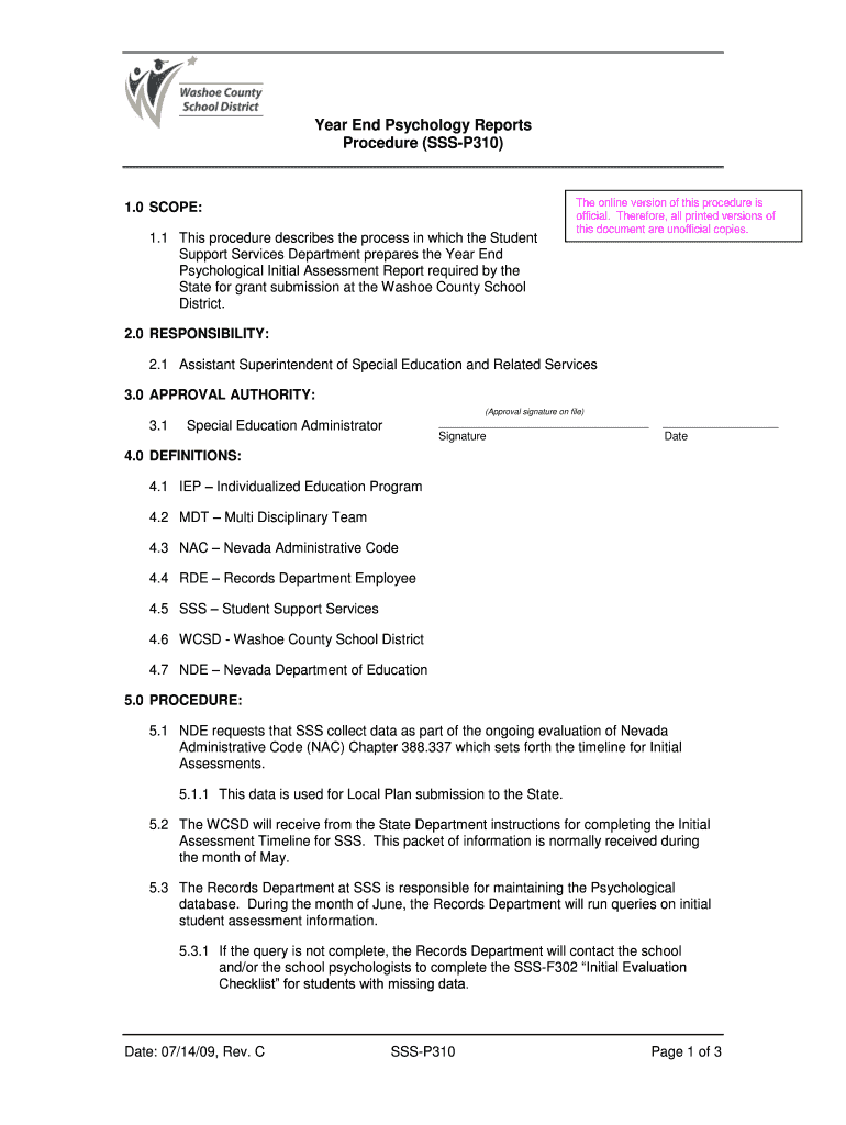 Get the free Year End Psychology Reports Procedure (SSSP310) 1
