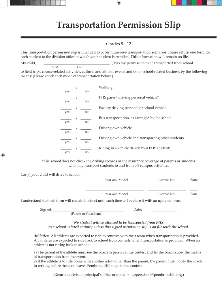 The transportation permission slip must be filled out with the necessary information regarding the transportation details.