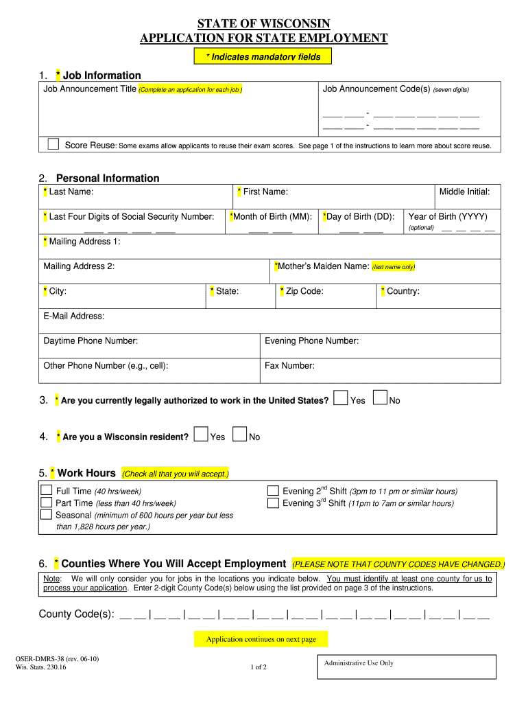 The Wisconsin State Employment Application is a government form used by individuals to apply for state employment opportunities in Wisconsin.