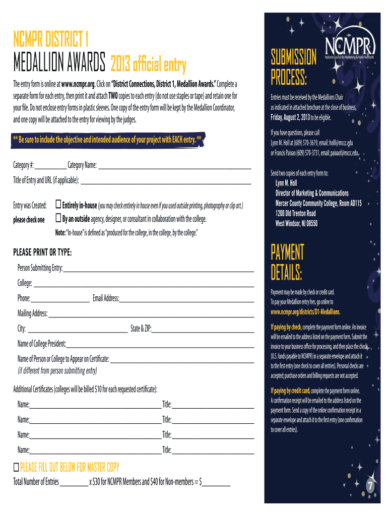 Get the free NcmPR DisTRicT 1 MEDALLION AWARDS 2013 official entry