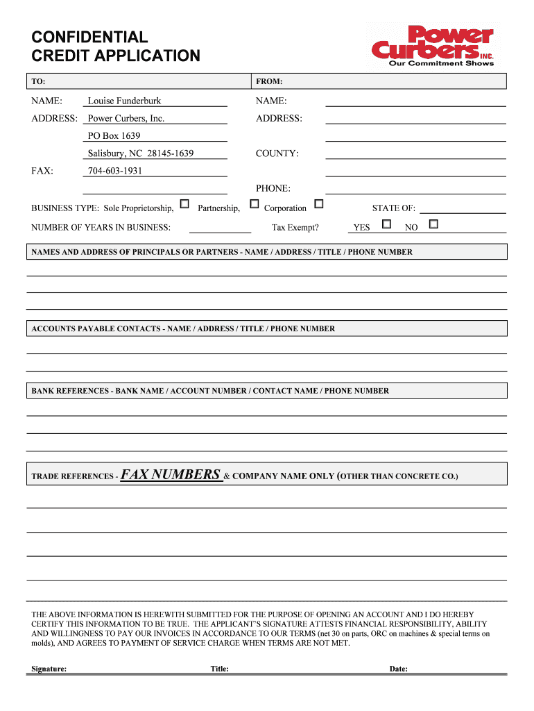 Any business seeking credit from a supplier can submit the Confidential Credit Application, provided they meet the supplier's criteria for creditworthiness.