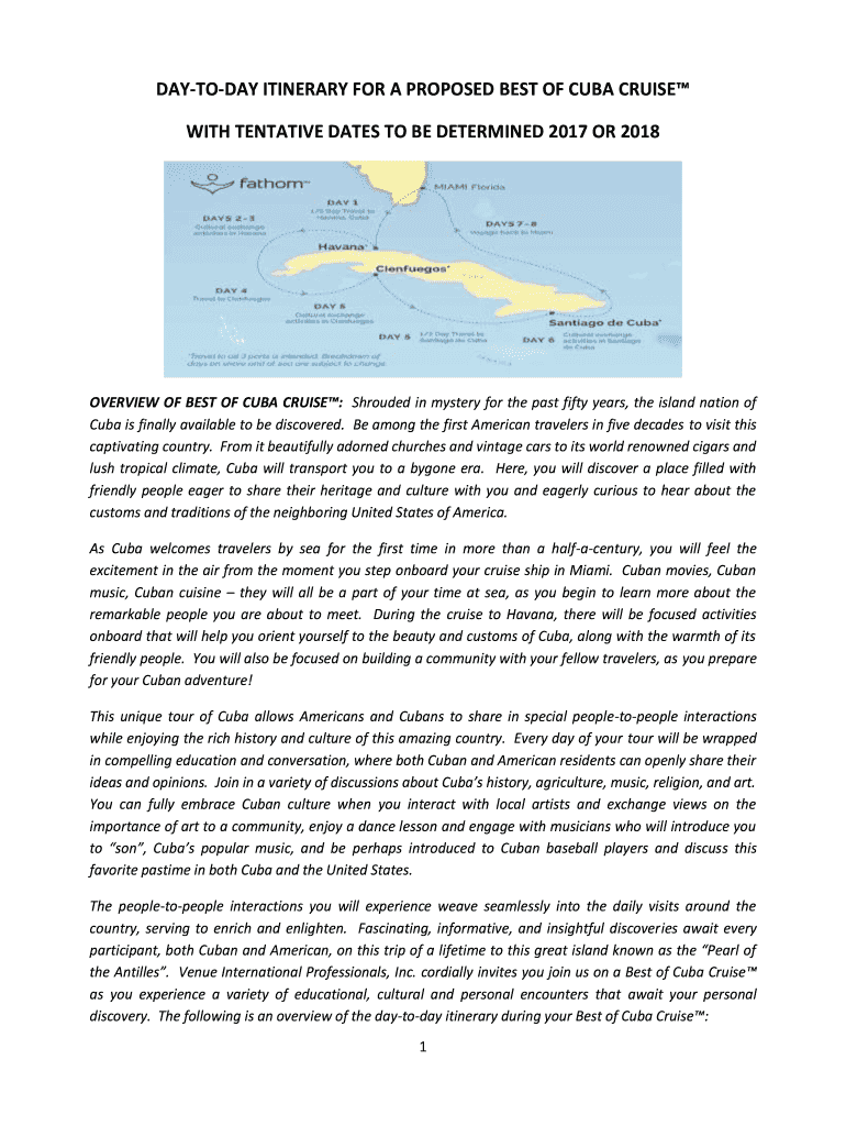 Get the free DAY-TO-DAY ITINERARY FOR A PROPOSED BEST OF CUBA CRUISE