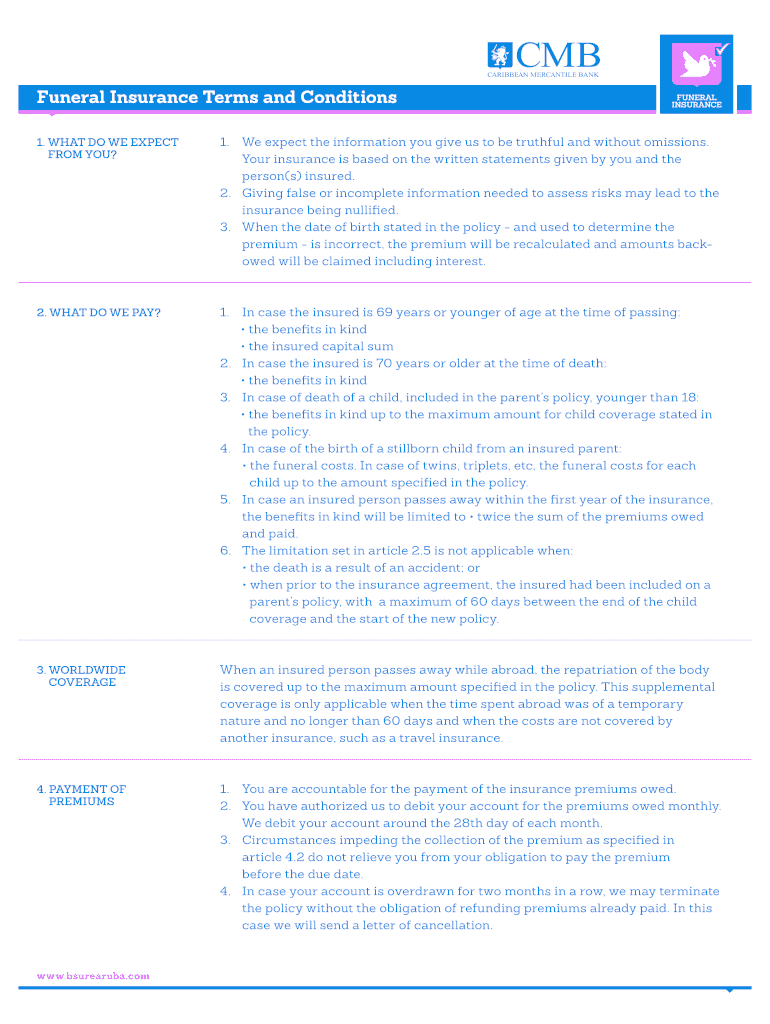 Funeral Insurance Terms and ConditionsFUNERAL INSURANCE1. WHAT DO WE EXPECT FROM YOU?1. We expect the information you give us to be truthful and without omissions. Your insurance is based on the written