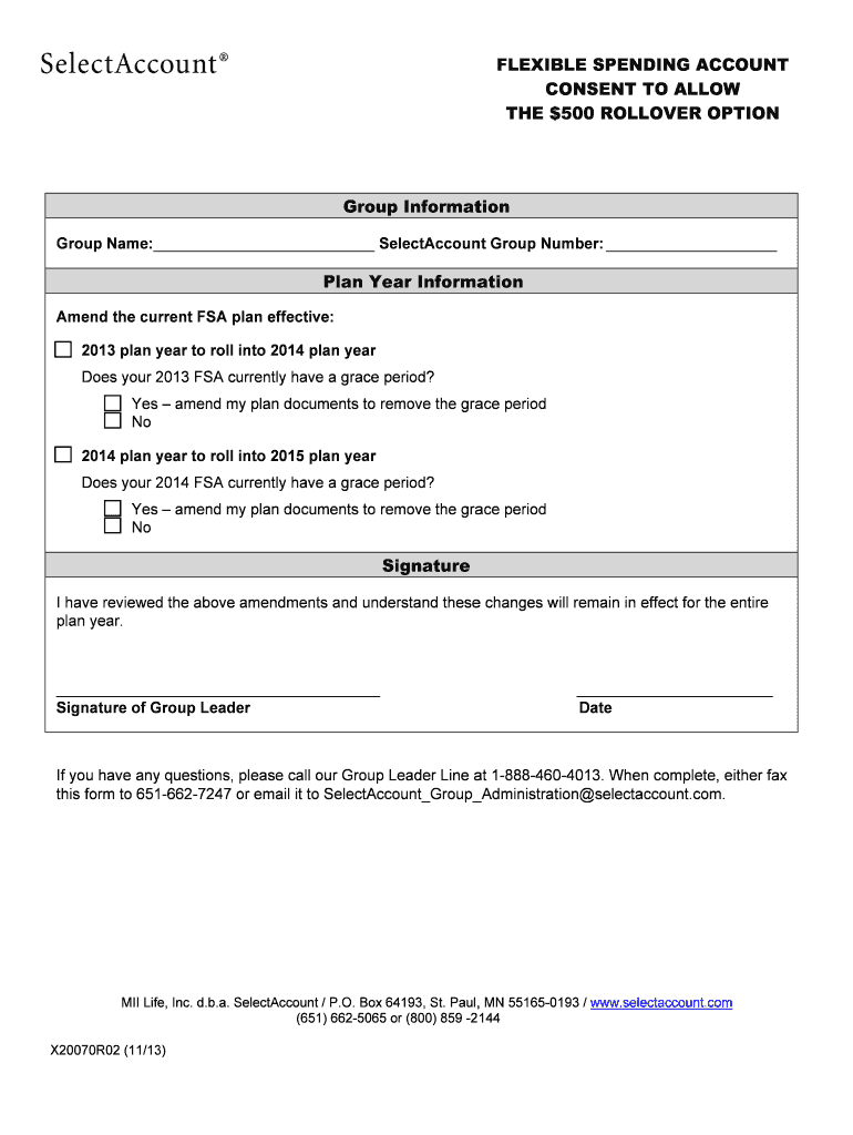 FLEXIBLE BLE OPEN ENDING ACC COUNT C CONSENT TO ALL OW THE $ $500 ROLL LOVER O OPTION Reset form Group Informal ton Go out Name: SelectAccoun Group Nu NT umber: Plan Yea Inform AR action Am mend the
