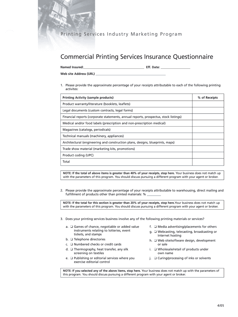 Get the free Commercial Printing Services Insurance Questionnaire