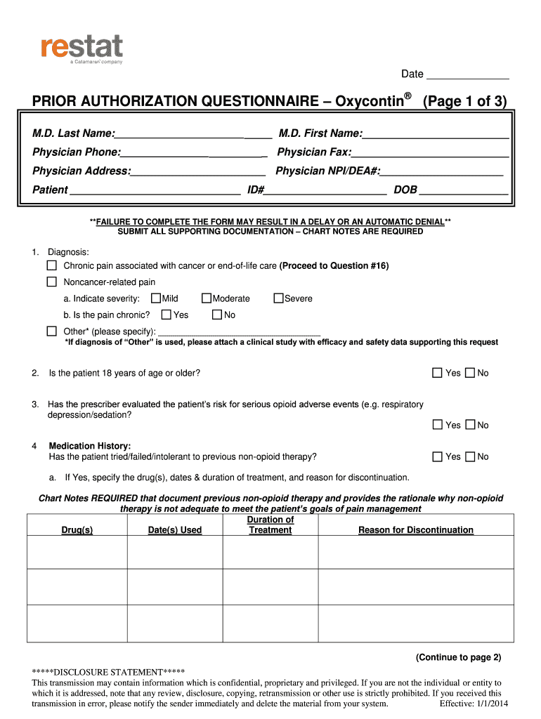 Comprehensive Guide to prior authorization questionnaire oxycontin