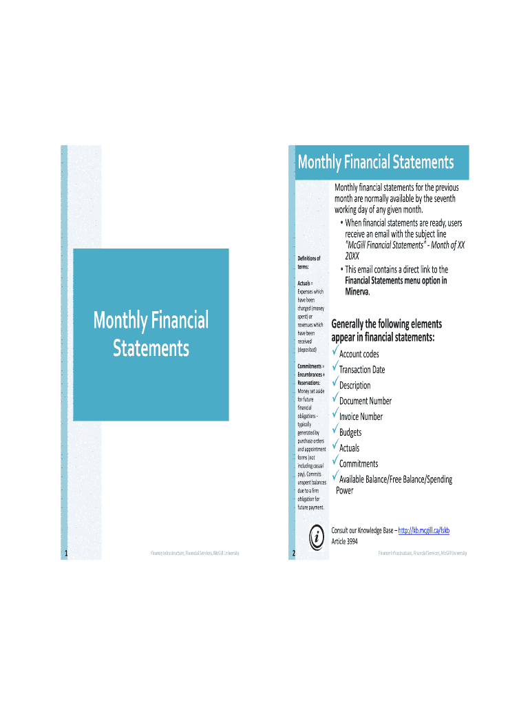 MonthlyFinancialStatementsDefinitionsof terms: Actual Expenses which have been charged(money spent)or revenues which have been received (deposited)MonthlyFinancial StatementsCommitments Encumbrances+