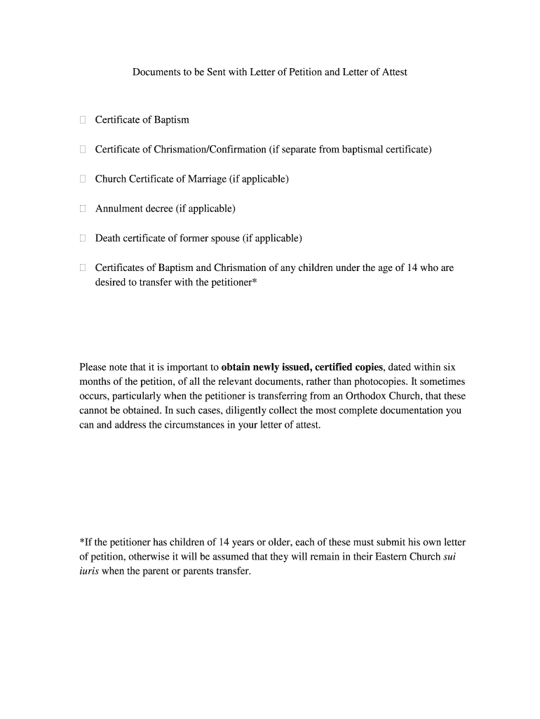 Get the free Documents to be Sent with Letter of Petition and Letter of Attest