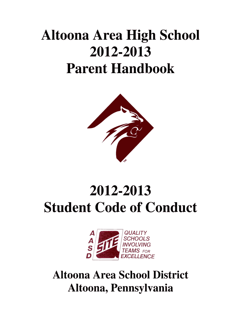 Altoona Area High School 2012-2013 Parent Handbook 2012-2013 Student Code of Conduct Altoona Area School District Altoona, Pennsylvania Please note: The Altoona Area School District will not have
