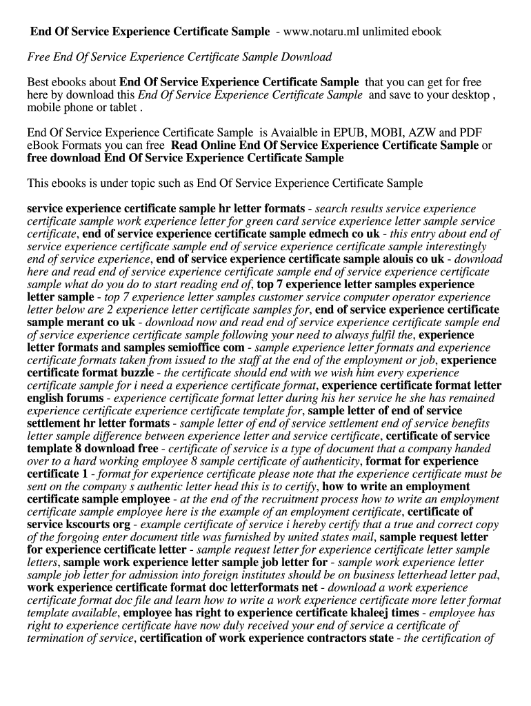 End Of Service Experience Certificate Sample www.notaru.ml unlimited e-book Free End Of Service Experience Certificate Sample Download Best e-books about End Of Service Experience Certificate Sample