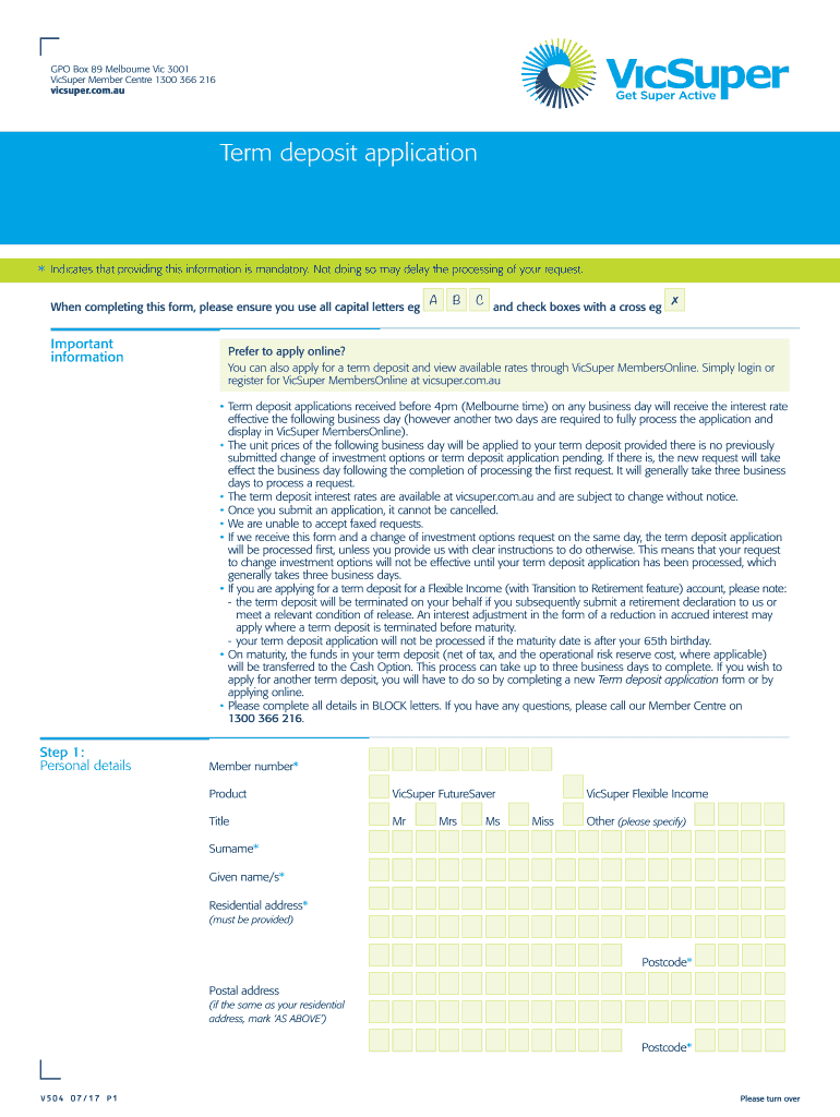 vicsuper.com.after deposit application×Indicates that providing this information is mandatory. Not doing so may delay the processing