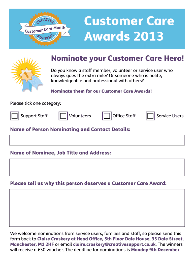Edit your nominate your customer care form online