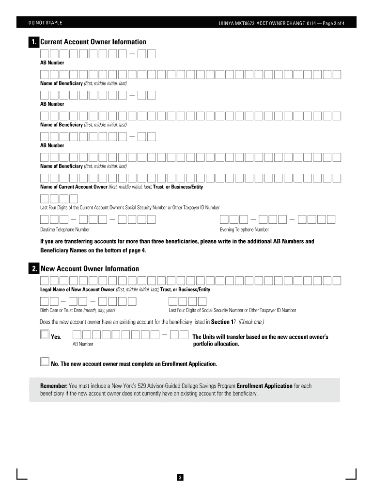 The New York 529 Account Owner Change Form is designed to facilitate the transfer of ownership for 529 college savings accounts. This form, also known as the new york 529 transfer form, serves as the official document required to change the current account owner to a new individual. By utilizing the ny 529 change of owner process, account holders can ensure that their savings plans align with their intended beneficiaries.