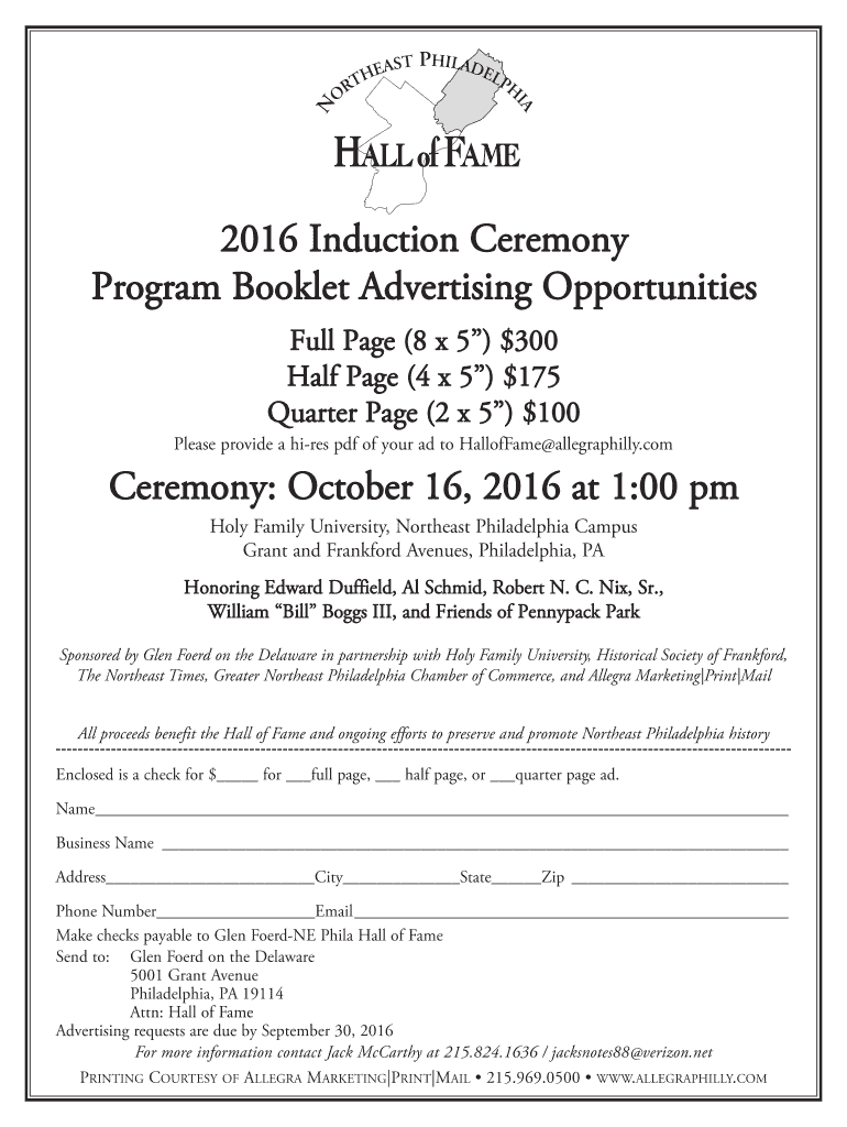 How to fill out program booklet advertising opportunities?