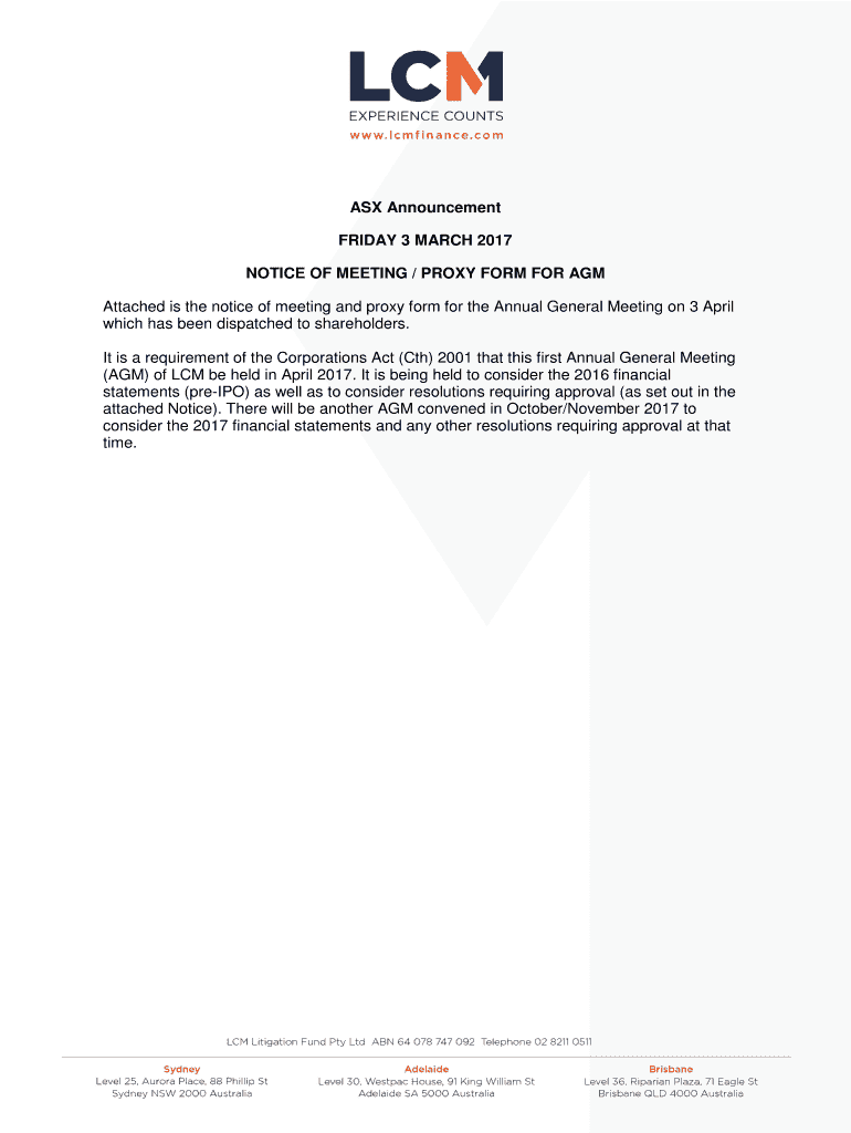 Get the free NOTICE OF MEETING / PROXY FORM FOR AGM