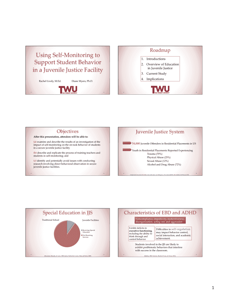 Rachel Lively, M. Ed. Roadmap1. Introductions2. Overview of Education in Juvenile Justice3. Current Study Diane Myers,