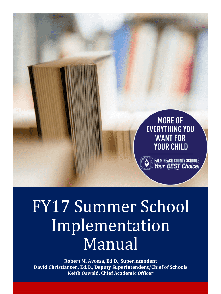 FY17 Summer School Implementation Manual Robert M. Fossa, Ed. D., Superintendent David Christian sen, Ed. D., Deputy Superintendent/Chief of Schools Keith Oswald, Chief Academic OfficerFY17 SUMMER