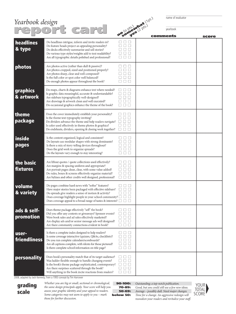 Yearbook design report card headlines & typed headlines intrigue, inform and invite readers in? Do feature heads project an appealing personality? Do decks effectively summarize and sell stories?