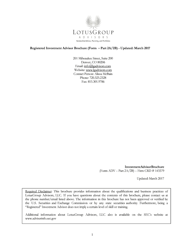 Get the free Registered Investment Advisor Brochure (Form Part 2A/2B) - Updated: March 2017