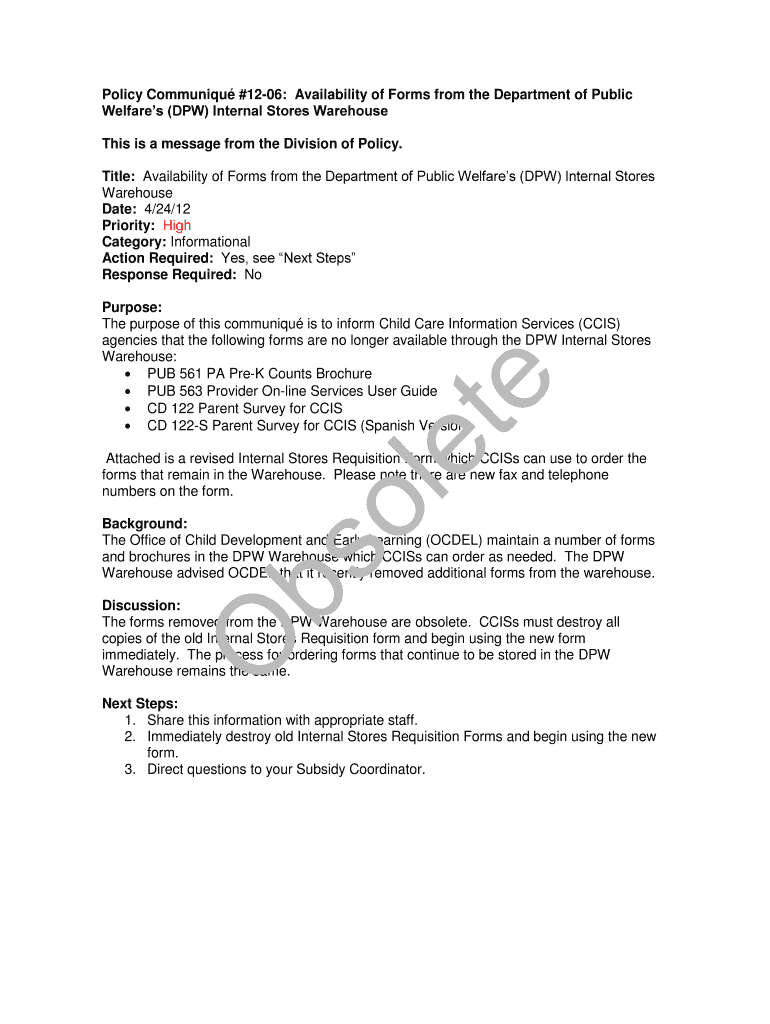 Get the free Policy Communiqu #12-06: Availability of Forms from the Department of Public