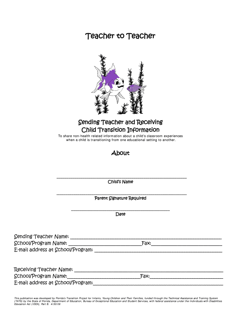 Parents must provide accurate and thorough information, while sending teachers must contribute observations from the child’s previous environment. Receiving teachers, on the other hand, utilize this information to prepare for the child’s integration into a new classroom setting.