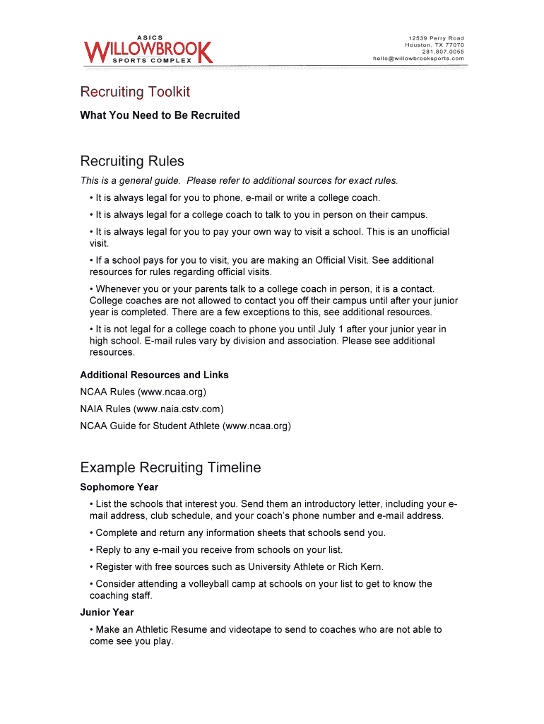 Recruiting Toolkit What You Need to Be RecruitedRecruiting Rules This is a general guide. Please refer to additional sources for exact rules. It is always legal for you to phone, email or write a