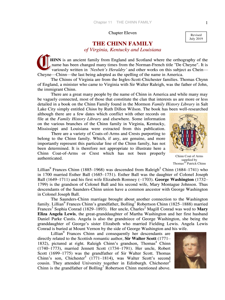 Chapter 11THE CHINA FAMILYChapter Eleven1 Revised July 2019THE CHINA FAMILY of Virginia, Kentucky and Louisiana HIND is an ancient family from England and Scotland where the orthography of the name