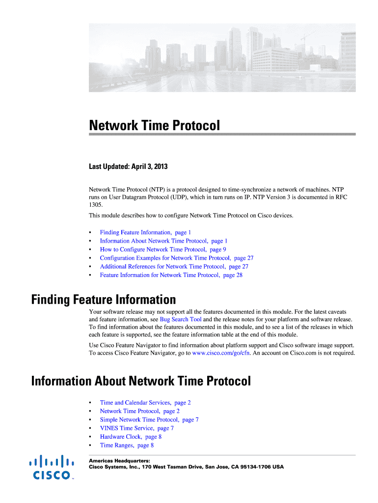 Network Time Protocol Last Updated: April 3, 2013, Network Time Protocol (NTP) is a protocol designed to time synchronize a network of machines. NTP runs on User Data gram Protocol (UDP), which in