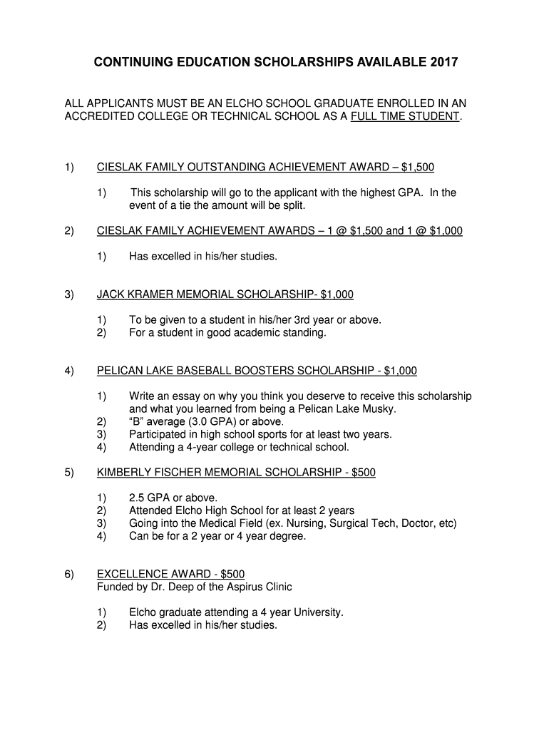 CONTINUING EDUCATION SCHOLARSHIPS AVAILABLE 2017 ALL APPLICANTS MUST BE AN ECHO SCHOOL GRADUATE ENROLLED IN AN ACCREDITED COLLEGE OR TECHNICAL SCHOOL AS A FULL TIME STUDENT.1)ISLAM FAMILY OUTSTANDING