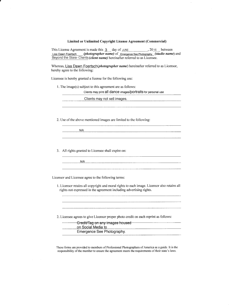 Get the free Limited or Unlimited Copyright License Agreement (Commercial)