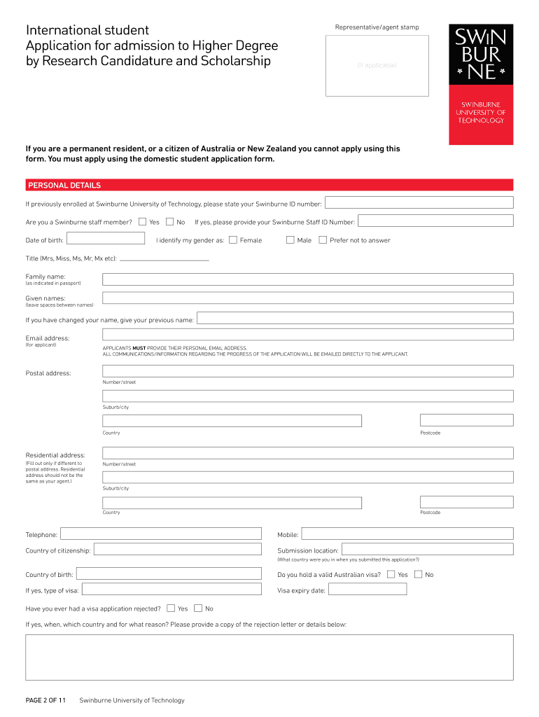 International student Application for admission to Higher Degree by Research Candidature and ScholarshipInstruction Guide Read these instructions carefully before you complete the application form.