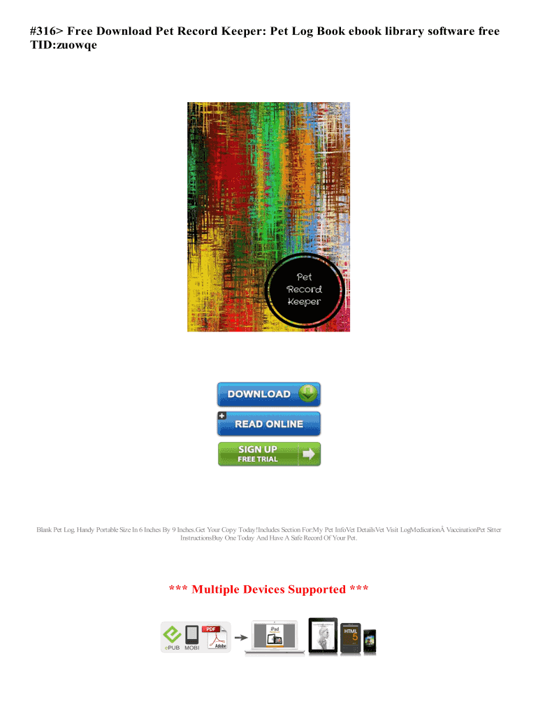 Get the #316 Free Download Pet Record Keeper: Pet Log Book ebook library software free