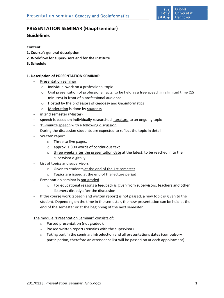 Get the free PRESENTATION SEMINAR (Hauptseminar)