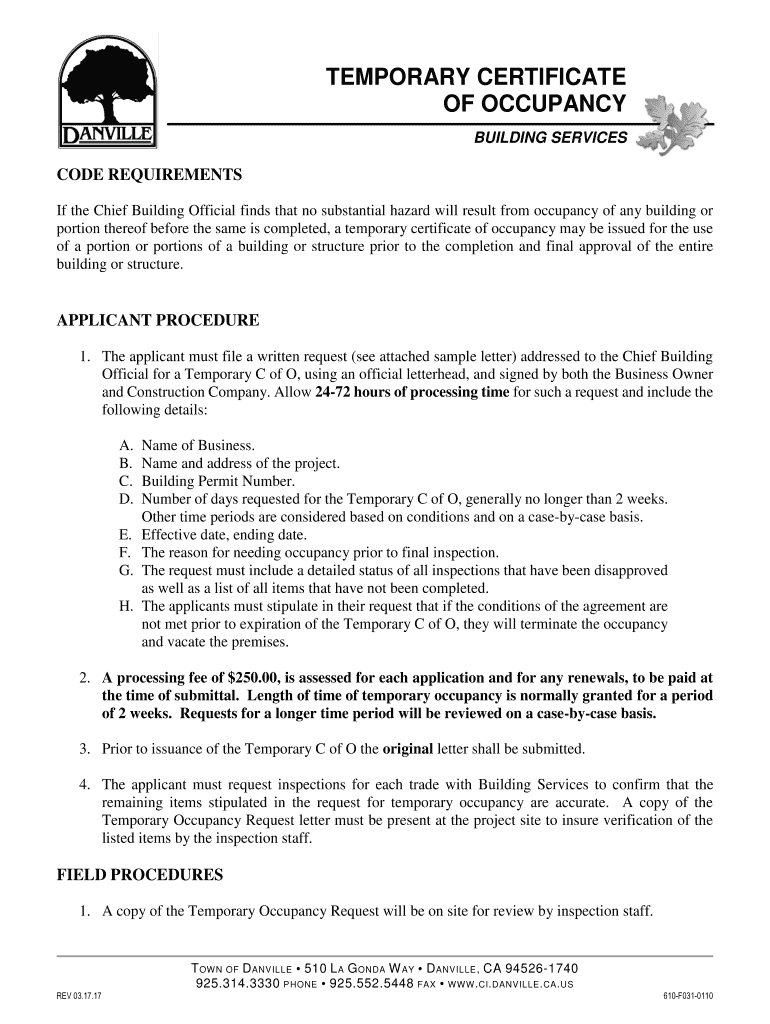 If the Chief Building Official finds that no substantial hazard will result from occupancy of any building or