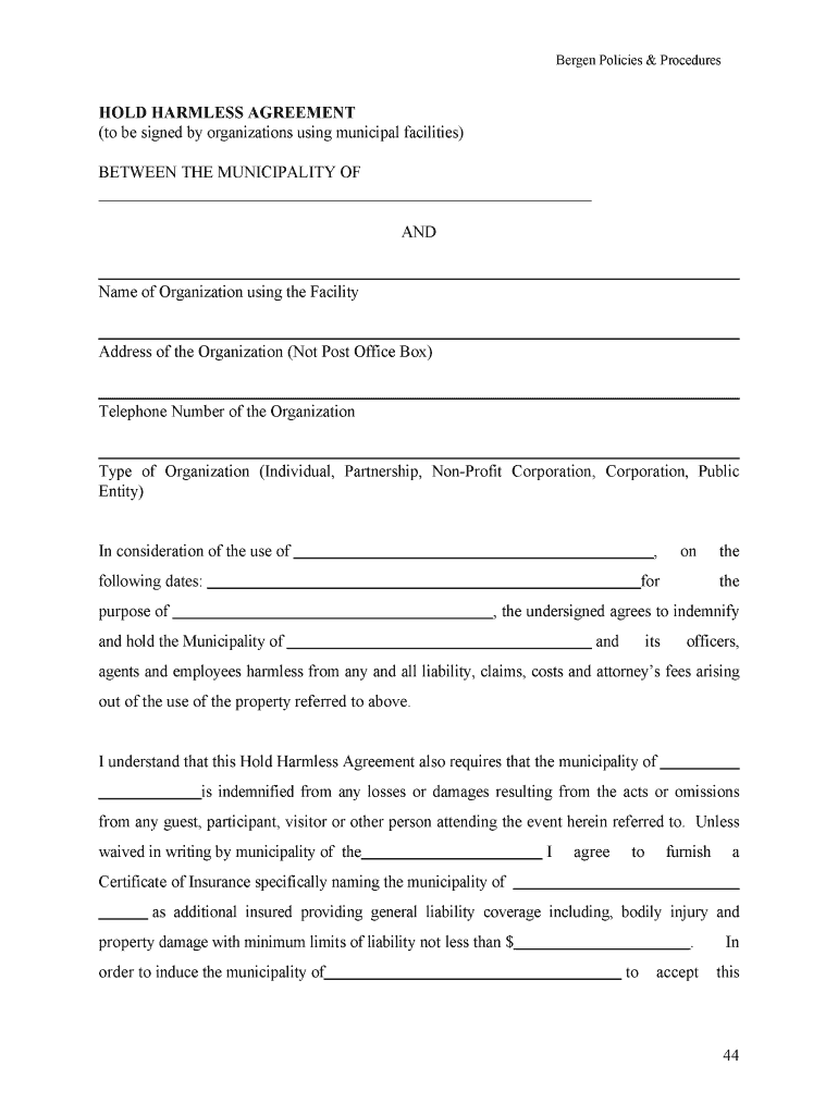 Get the free BHold Harmless Agreementb - Borough of Franklin Lakes