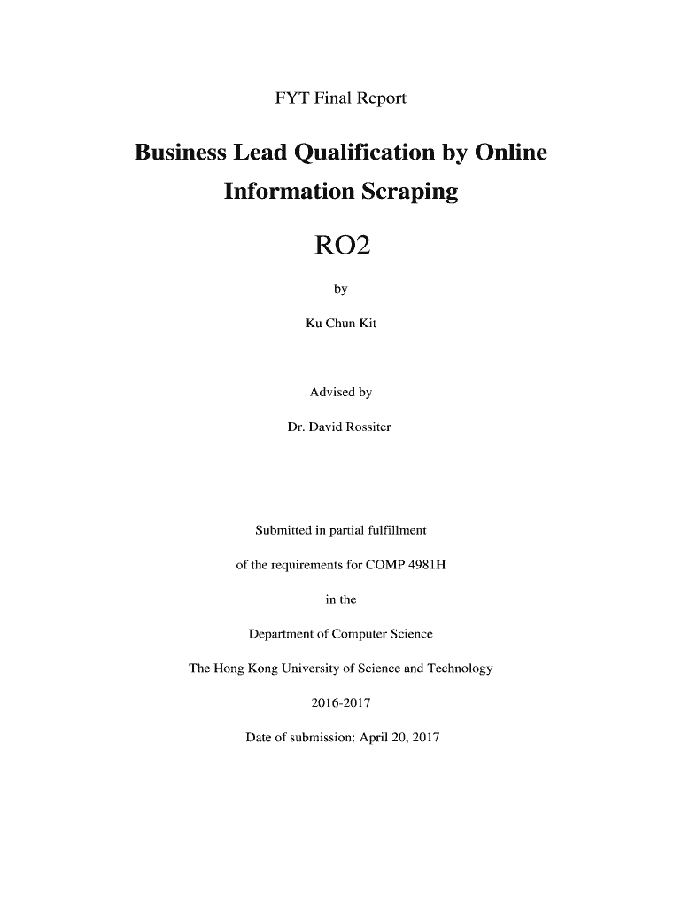 FIT Final ReportBusiness Lead Qualification by Online Information ScrapingRO2 by KU Chen Misadvised by Dr. David RossiterSubmitted in partial fulfillment of the requirements for COMP 4981H in the