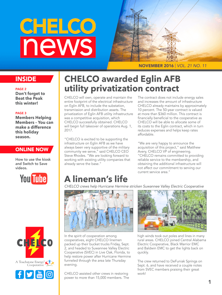 NOVEMBER 2016 VOL. 21 NO. 11INSIDE PAGE 2Dont forget to Beat the Peak this winter! PAGE 3Members Helping Members You can make a difference this holiday season.ONLINE NOW How to use the kiosk and Switch