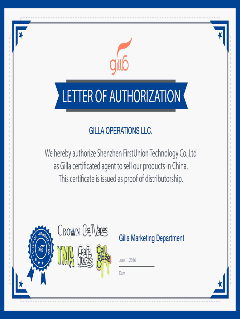 VILLA OPERATIONS LLC.AUTHORIZED I O NILE T TER Owe hereby authorize Shenzhen First Union Technology Co., Ltd