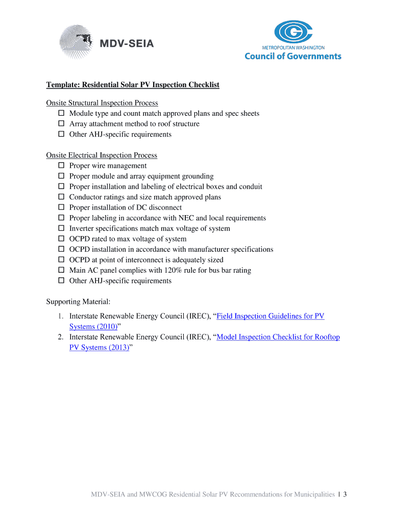 Get the free Template: Residential Solar PV Inspection Checklist