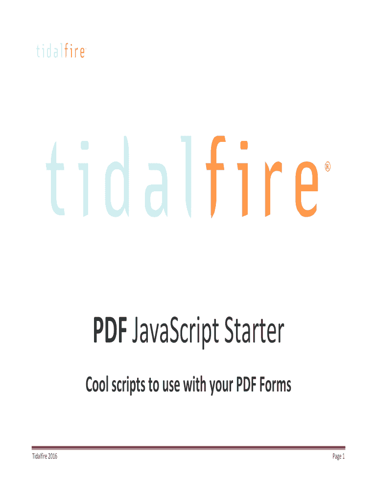PDF JavaScript Starter Cool scripts to use with your PDF Forms Tidal fire 2016Page 1Introduction PDF (Portable Document Format) provides many useful features. You can further enhance your PDF documents