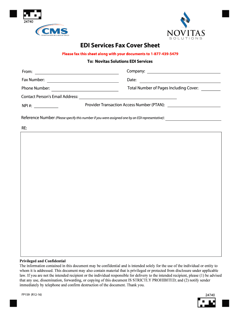 Any individual or business that is sending an EDI transaction via fax is required to file an edi services fax cover.