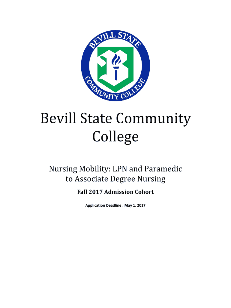 Bill×State×CommunityCollegeNursing×Mobility: LPN×and×Paramedic to×Associate×Degree×NursingFall×2017 Admission×CohortApplication×Deadline : May×1, 2017BEVILL STATE COMMUNITY COLLEGE