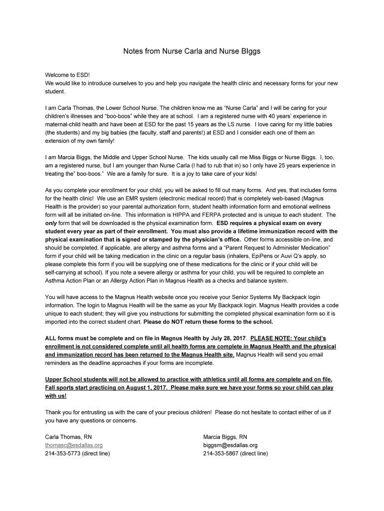 Get the free Notes from Nurse Carla and Nurse BIggs