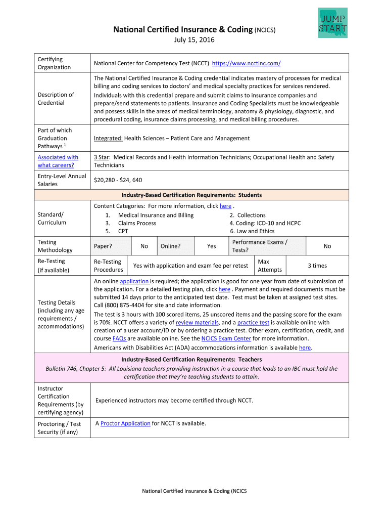 Get the free National Certified Insurance & Coding (NCICS)