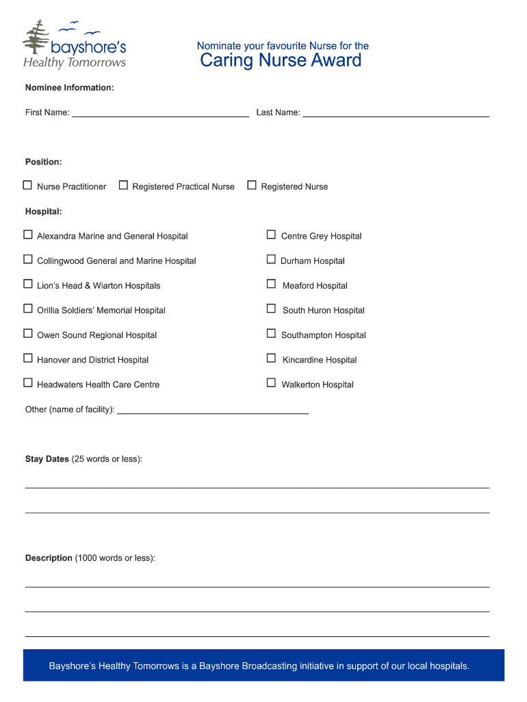Nominate Your Favourite Nurse is not the form you're looking for?Search for another form here.