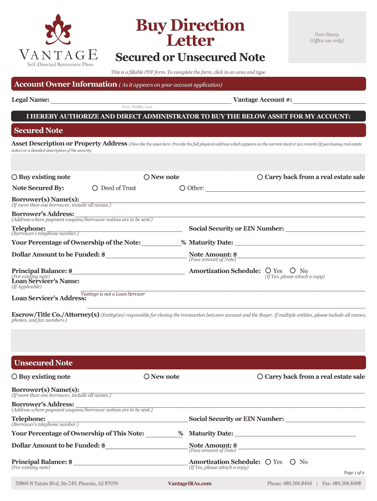 UNSECURED PROMISSORY NOTE PURCHASE Processing established your Vantage Self-directed IRA and funded your account, below is a high level flowchart to assist you in the transaction process of investing