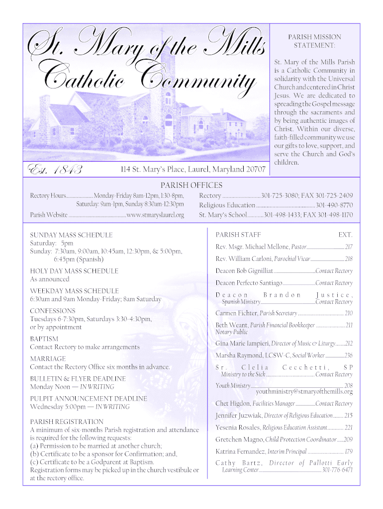 Est. 1843114 St. Mary's Place, Laurel, Maryland 20707PARISH MISSION