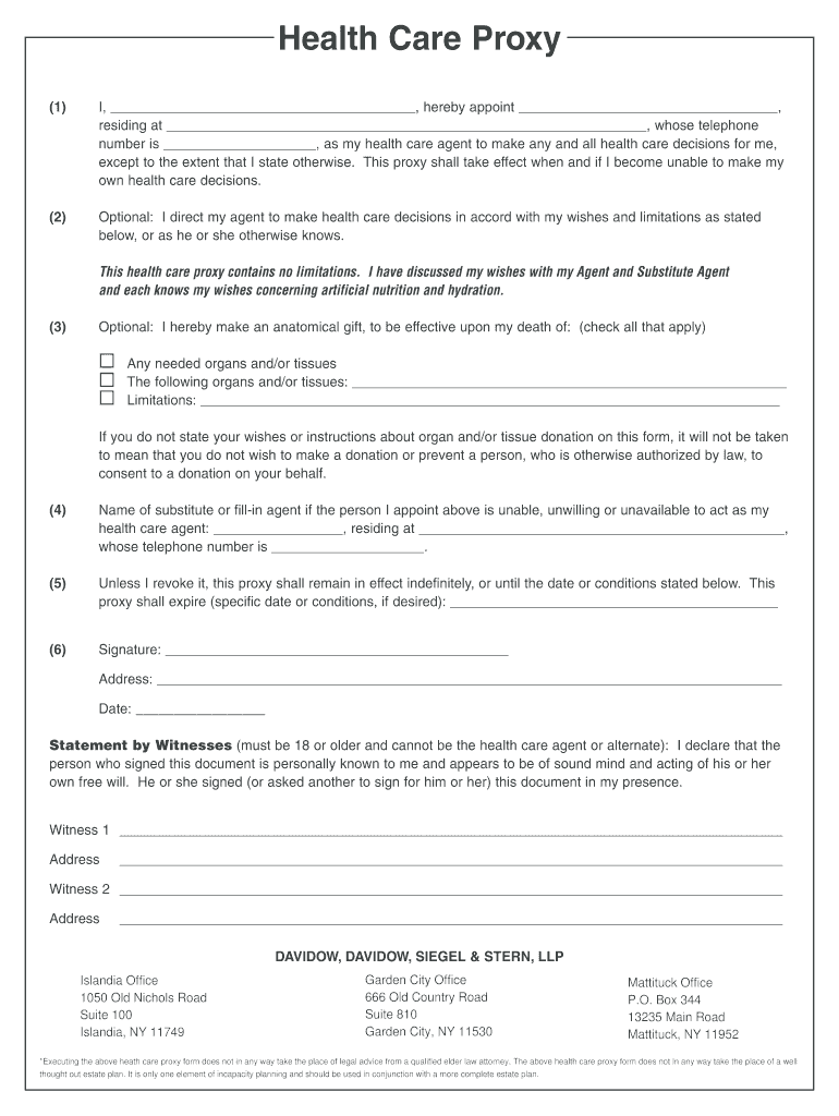 Get the free BHealth Care Proxyb - Davidow Davidow Siegel amp Stern LLP